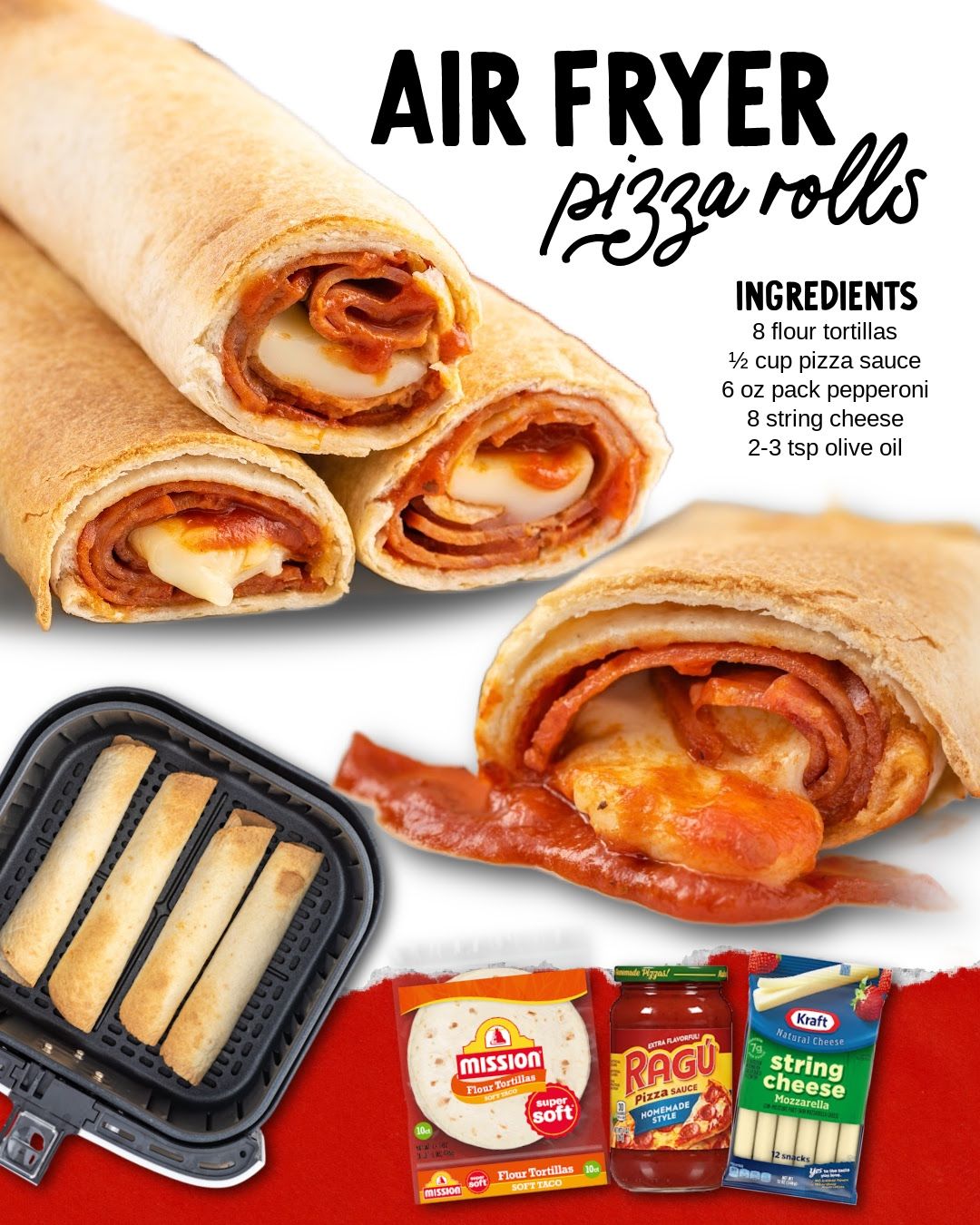 - 6 ounces full-size sliced pepperoni, (you will need 10 slices per pizza roll)