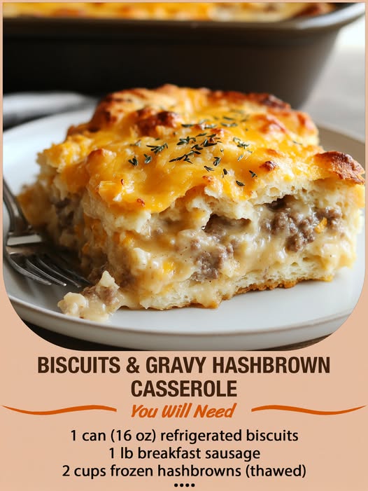 Biscuits & Gravy Hashbrown Casserole – The Ultimate Breakfast Comfort!