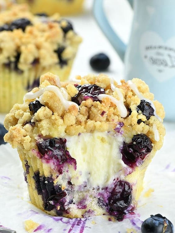 Blueberry Cream Cheese Muffins with Streusel Crumb Topping are moist and flavorful breakfast muffins, loaded with juicy blueberries and cream cheese filling.
