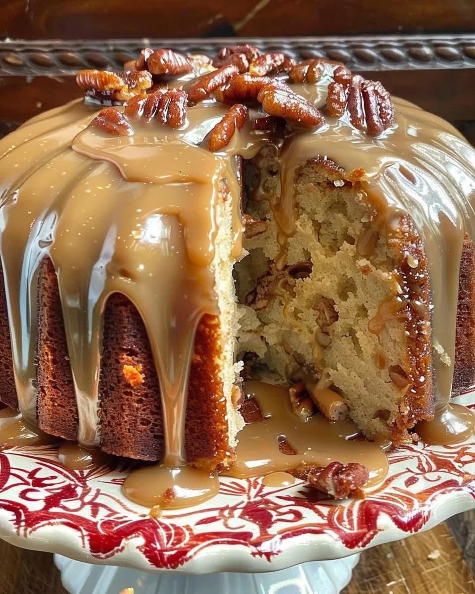 This Caramel Brown Sugar Pound Cake elevates a classic pound cake by using brown sugar and brown butter for a rich, caramelized backbone, and by folding in chopped pecans for texture and toasty flavor. The batter is intentionally dense and moist, producing a tight crumb that soaks up the silky brown sugar caramel without collapsing. The crowning touch is a batch of caramelized candied pecans that add a crunchy, buttery-sweet counterpoint to each slice.