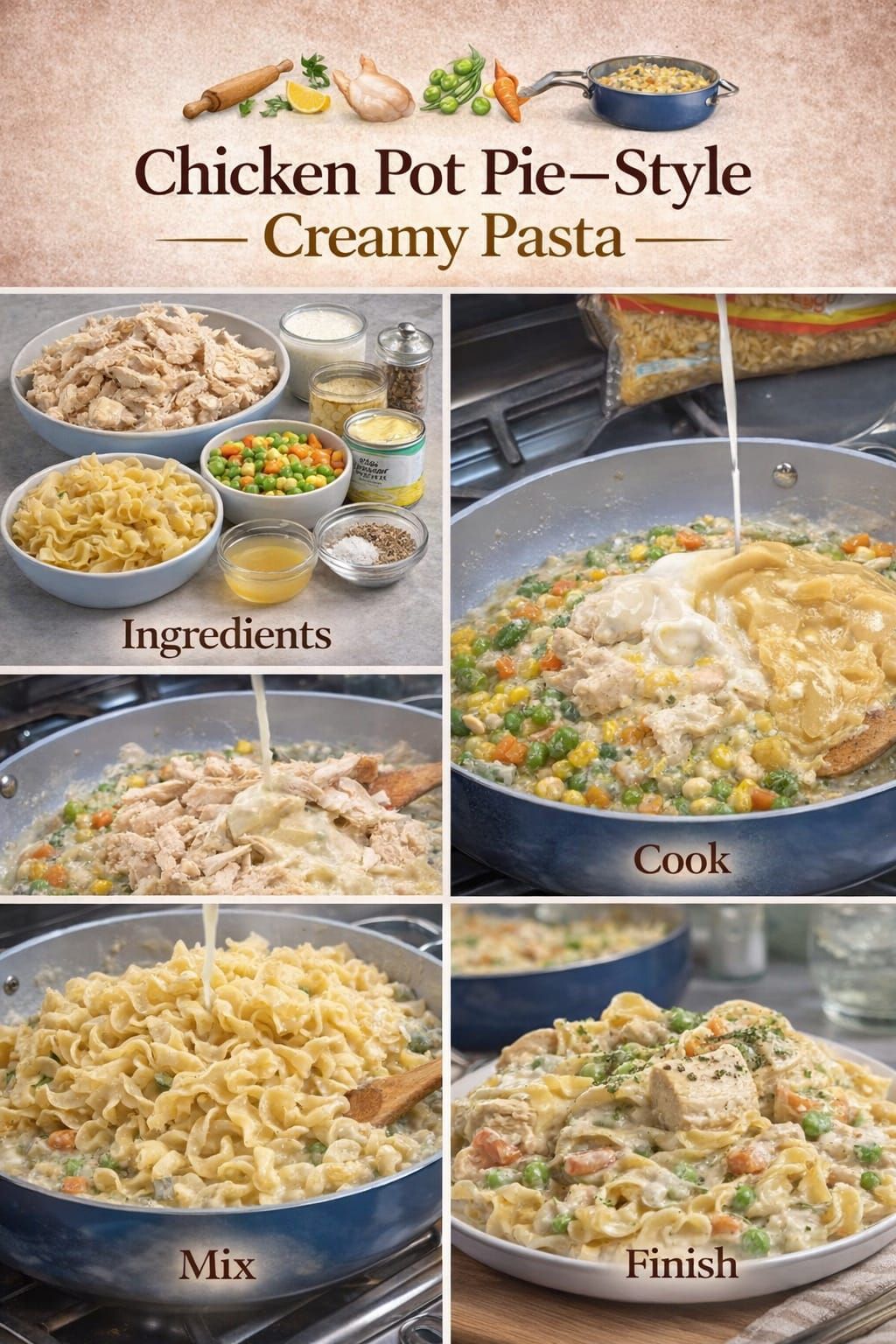 Before you begin cooking your Chicken Pot Pie–Style Creamy Pasta, make sure you have all the necessary ingredients on hand: