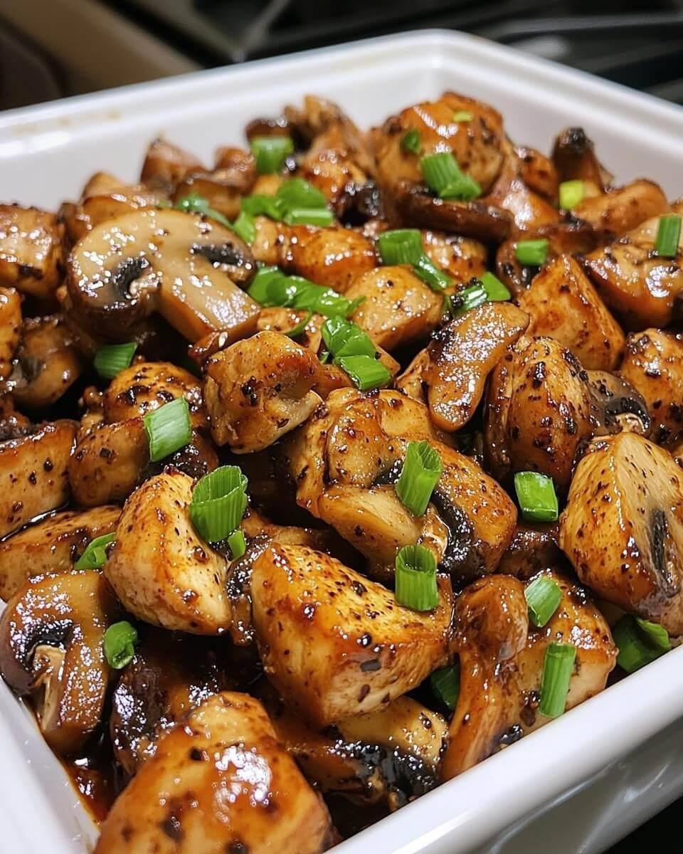 Chicken with black pepper and mushrooms is a classic recipe that combines comforting home-cooked flavor with a touch of gourmet. The black pepper enhances the taste of the chicken, while the mushrooms add a tender texture and earthy flavor that balances the dish perfectly.
