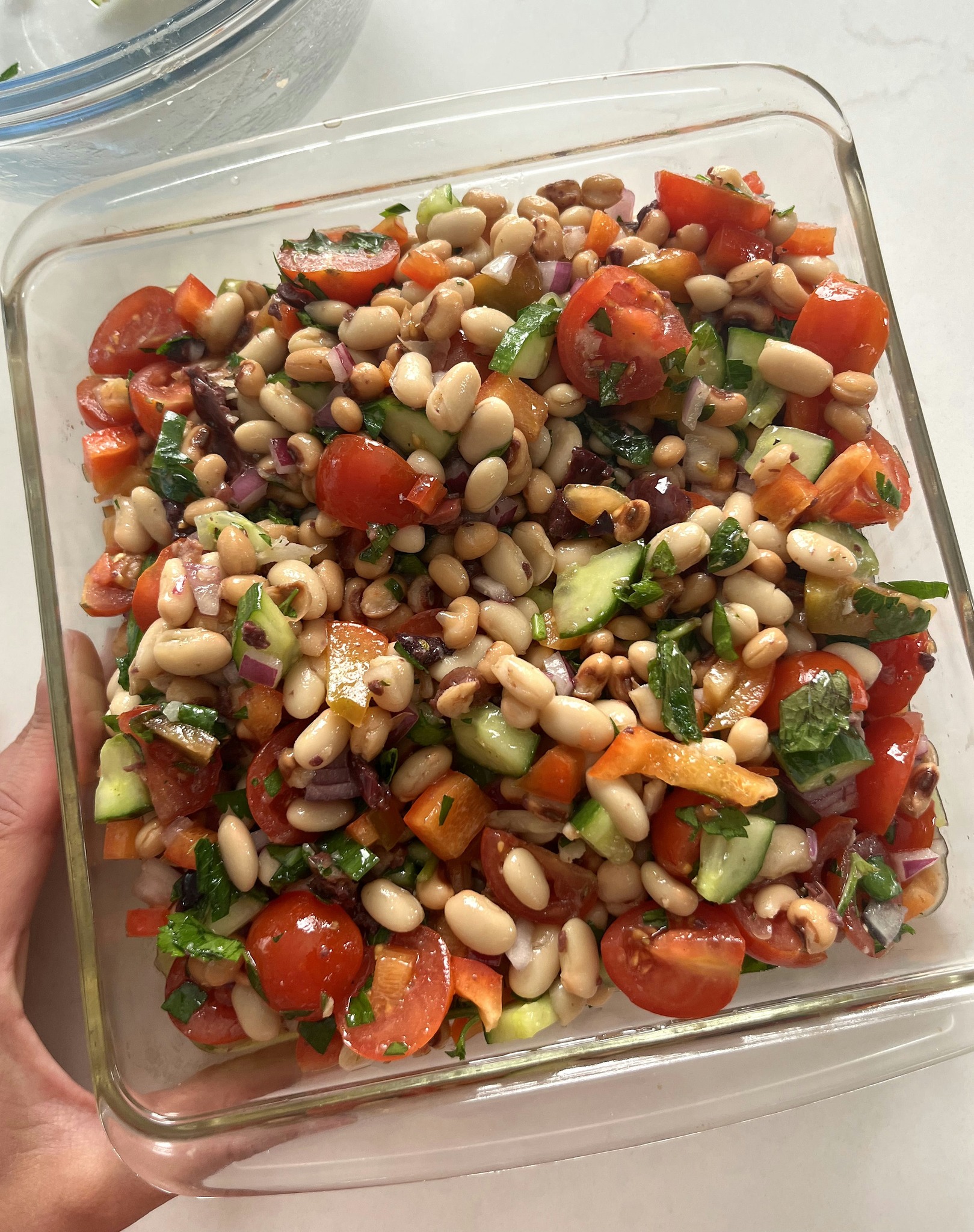 If you’re looking for a dish that’s fresh, colorful, and delicious, then you’ve come to the right place. This Cowgirl Caviar checks all those boxes and then some! Packed with beans, crisp vegetables, olives, and tangy feta, it’s a hearty salad that works beautifully as a side, snack, or even a light lunch. The bright lemony dressing pulls everything together and coats each bite in plenty of flavor. Think of it as a Mediterranean twist on the classic cowboy caviar. Once you taste it you won’t want to go back!