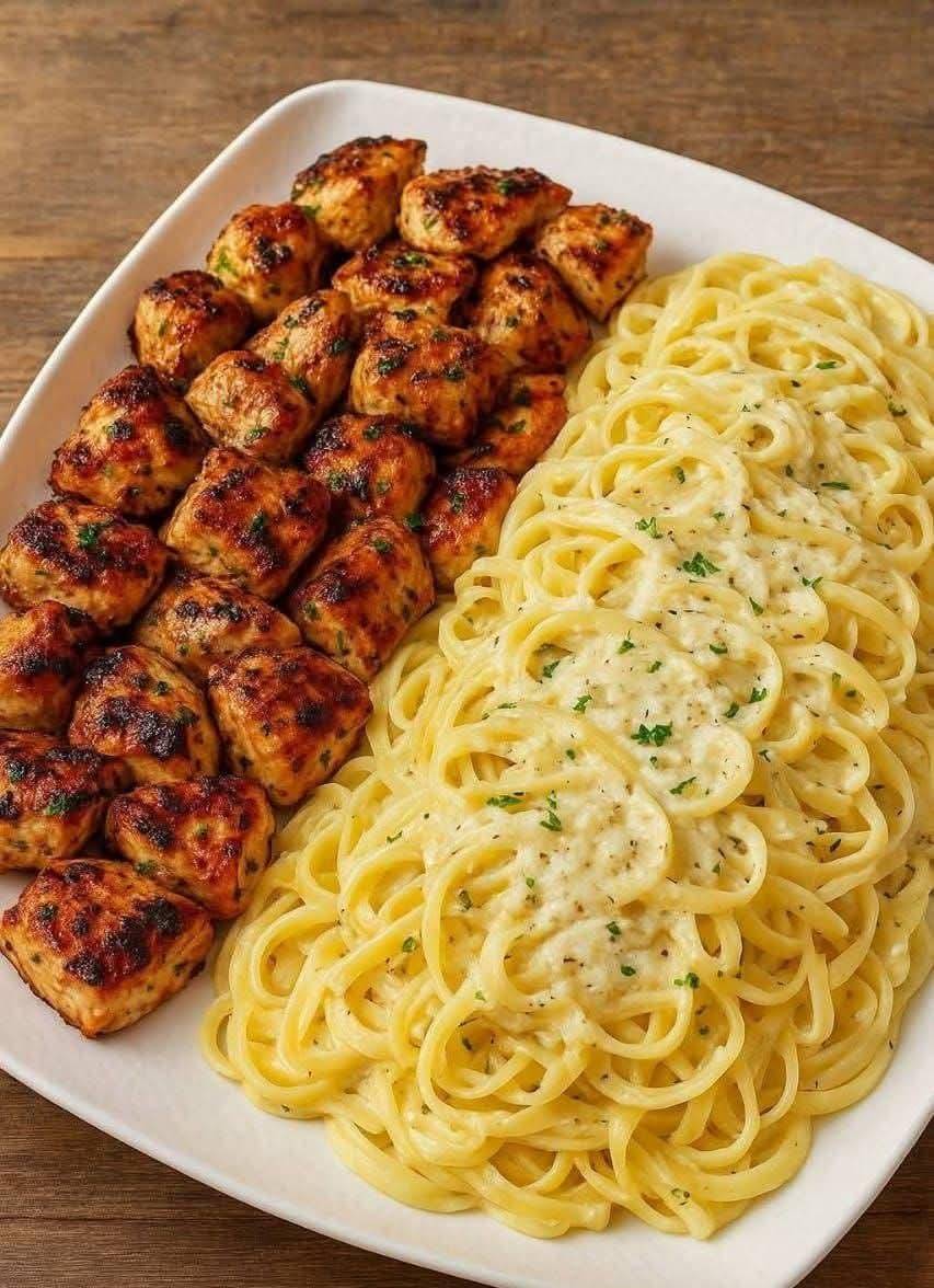This indulgent pasta dish combines juicy pan-seared chicken with a rich, homemade garlic butter Alfredo sauce tossed with linguine. Perfect for weeknight dinners or a cozy date-night meal.