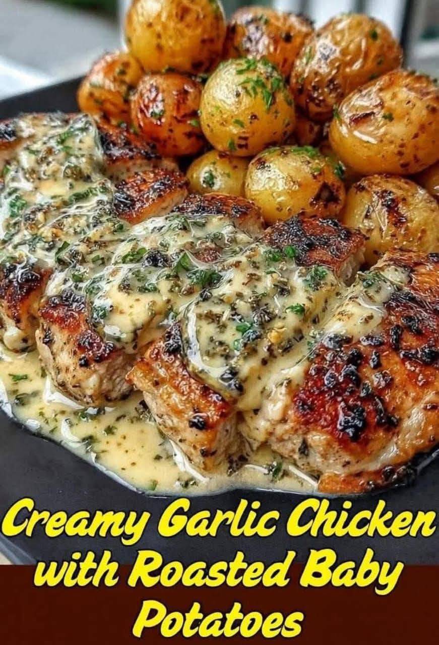 Creamy Garlic Chicken with Roasted Baby Potatoes