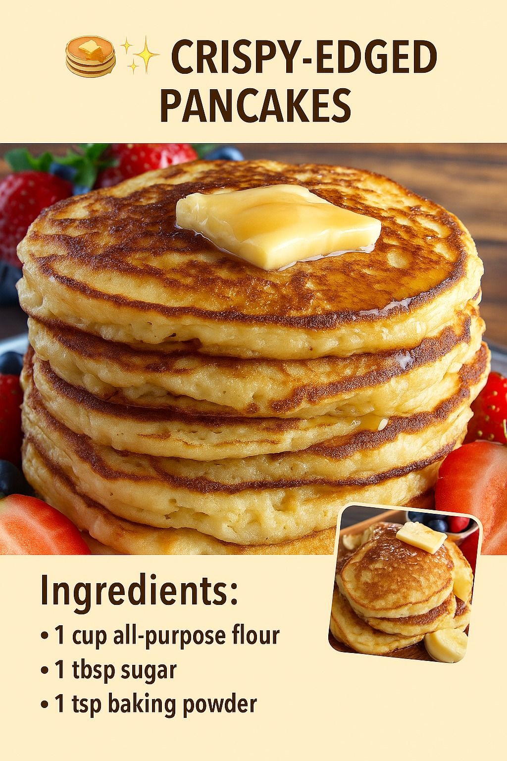 To create the perfect crispy-edged pancakes, you will need the following ingredients: