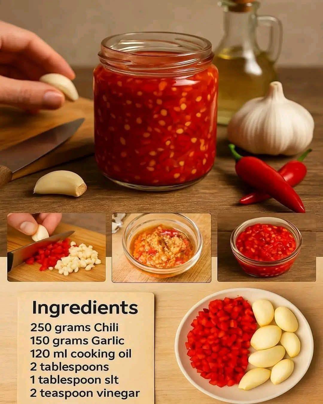 • 250 g fresh red chilies (mild or hot, depending on your preference)