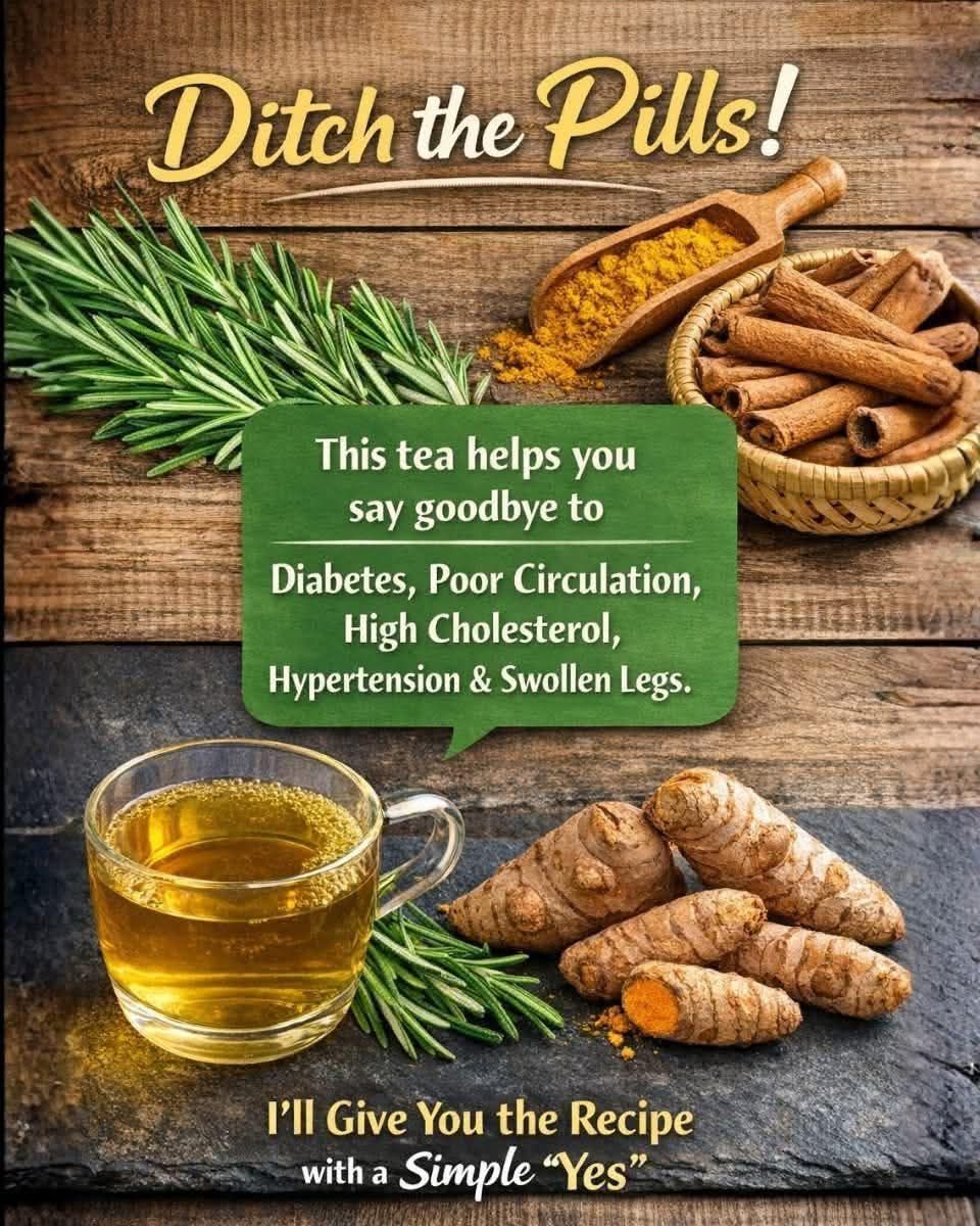 This herbal infusion is a natural remedy for several common health concerns, including diabetes, poor circulation, high cholesterol, hypertension, and swollen legs. Packed with powerful, healing ingredients like turmeric, cinnamon, and rosemary, it can be a soothing and beneficial alternative to pills.