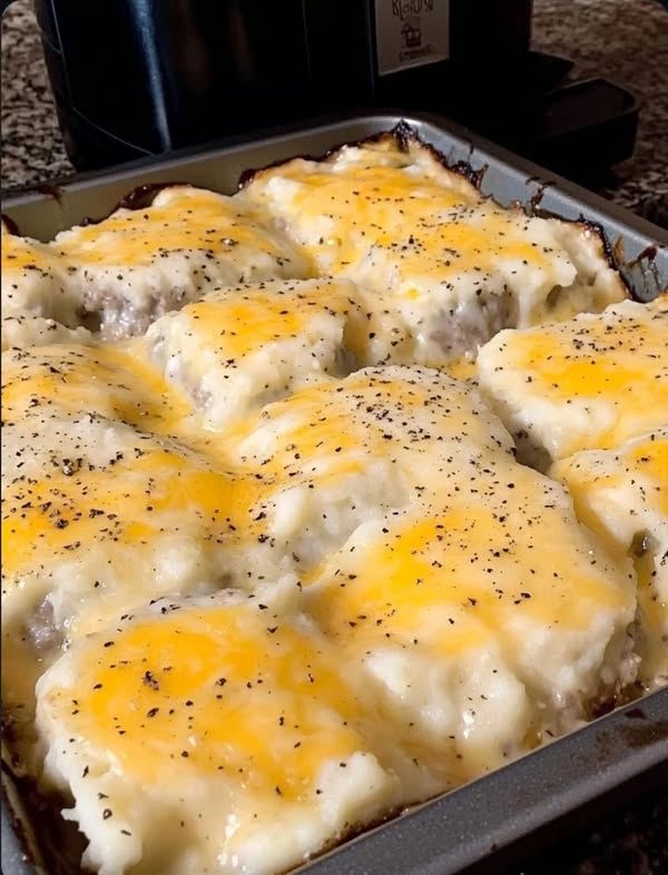 This recipe provides a classic comfort meal of meatloaf topped with creamy mashed potatoes and melted cheddar cheese. It’s a hearty and satisfying dish perfect for family dinners.