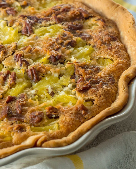 Pecan pie is a family favorite throughout the year, but it’s especially nice during the holidays. It’s a Thanksgiving and Christmas staple, but every once in a while we like to switch it up a little bit, tweaking things here and there, so that we get a unique dessert that breathes new life into a classic, and that offers a little surprise to our hungry friends and family. Here we took an “island” approach and added coconut and pineapple to our pie – it was so good, you have to try it!