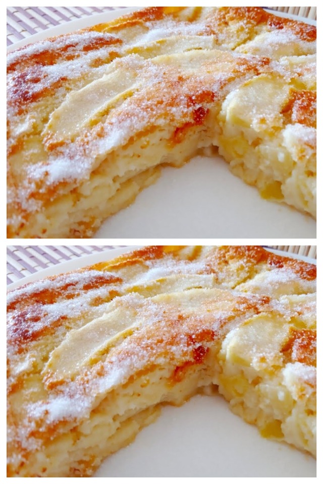 This pie turns out very soft and tender, with lots of filling and just a little batter. The recipe is simple — quick and easy to make.