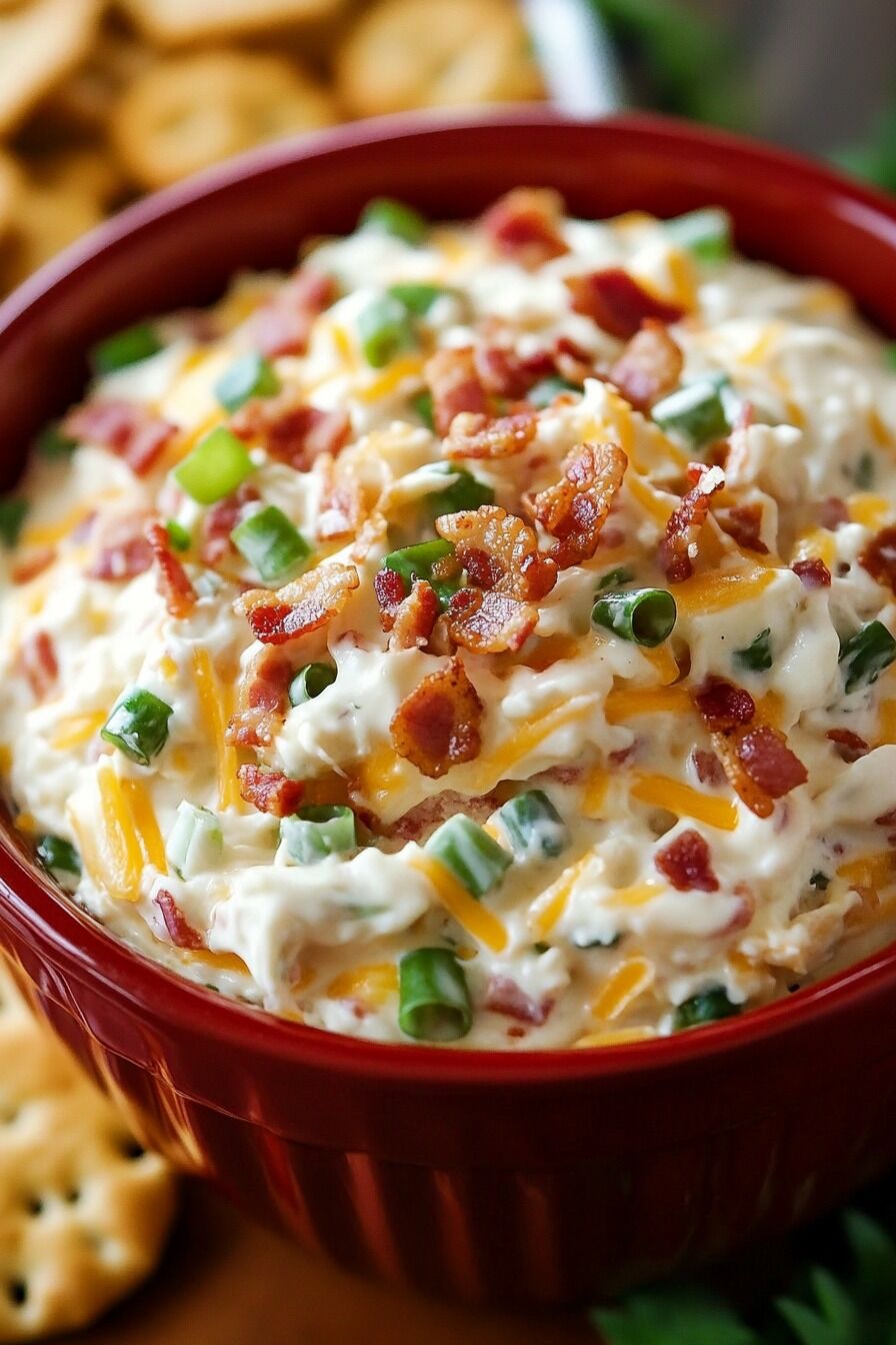 Fold in the magic of bacon – 4 slices, cooked to perfection and crumbled. The bacon adds a delightful smokiness that complements the creaminess of the dip.