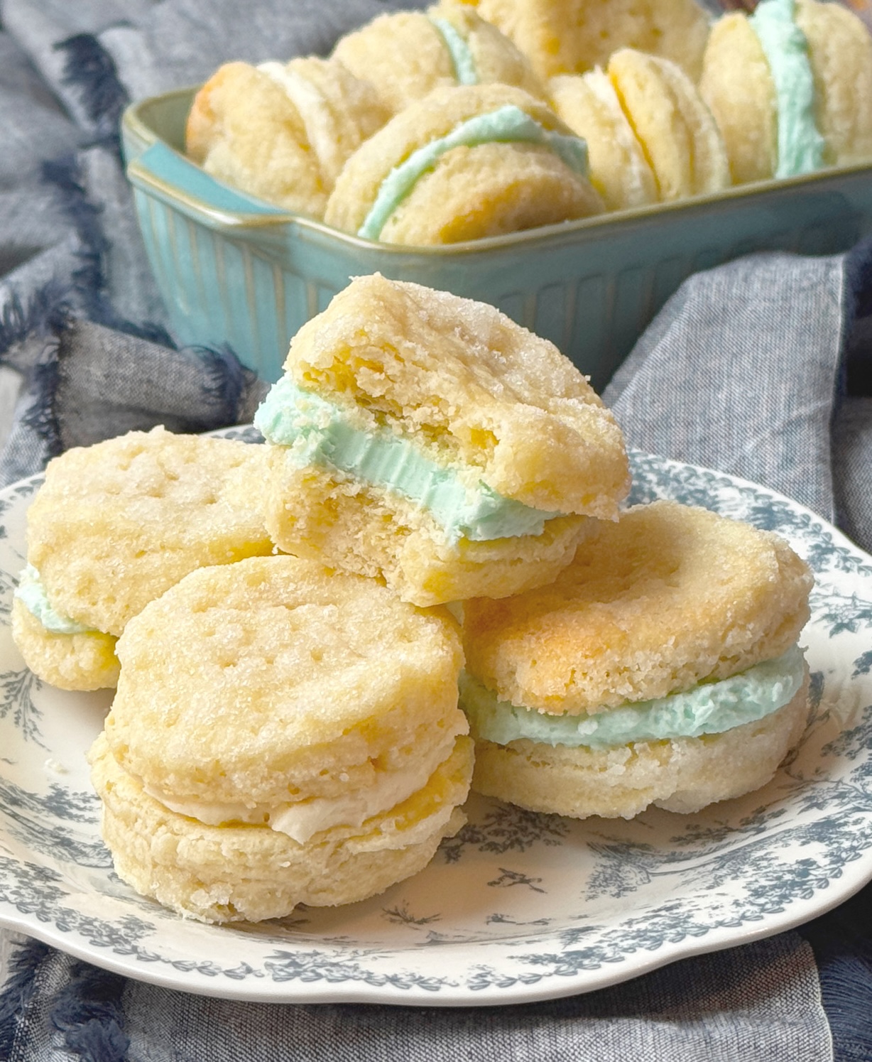 Parisian Cream Wafers are one of those retro cookies that have been forgotten with time. A simple dough is rolled and dipped in sugar before going into the oven to become a wonderful soft, melt-away cookie. Once cooled, the cookies become cookie sandwiches with a creamy vanilla buttercream decorated to suit any season!