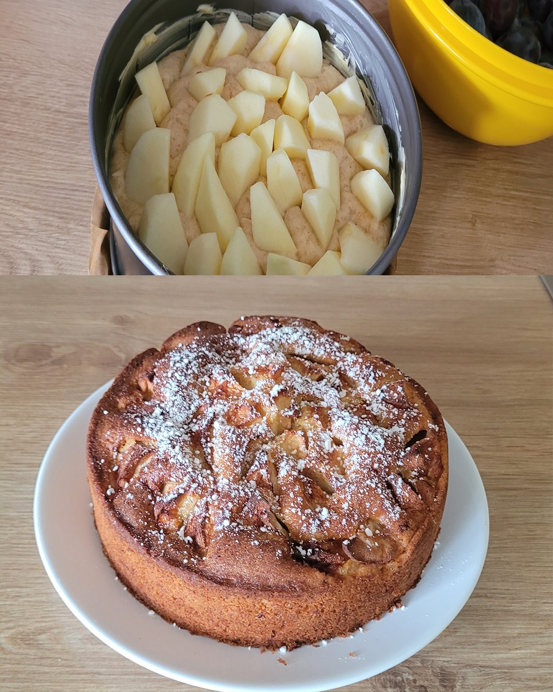 We have so many apples and plums in the garden ππ, so I took the time today to bake a small apple cake. Moist, sweet, and simply delicious!
