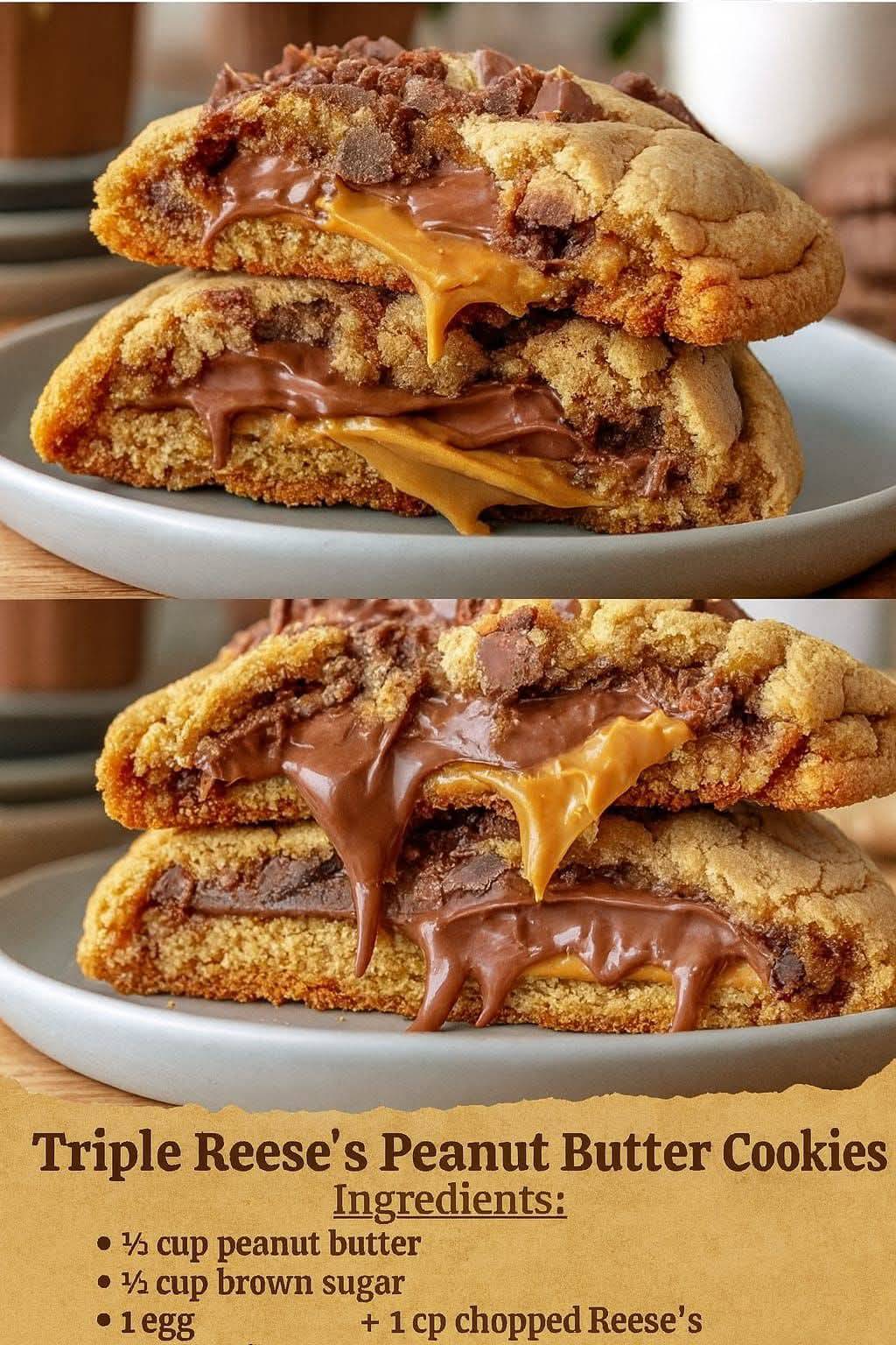These Triple Reese’s Peanut Butter Cookies are the perfect combination of peanut butter, chocolate, and the classic Reese’s cups that everyone loves. Soft, chewy, and packed with peanut butter flavor, each bite will transport you to a peanut butter lover’s paradise. Whether you’re baking for yourself or sharing them with family and friends, these cookies will satisfy every sweet tooth!